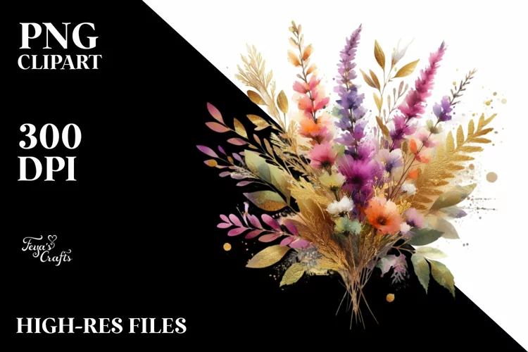 Similar Design Products to Vibrant Bouquet with Heather | Gold Foil Clipart