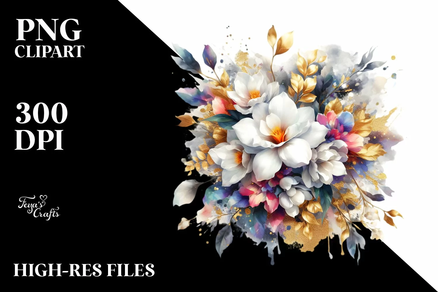 Vibrant Bouquet with Gardenia Splash | Sublimation | Clipart example image 1