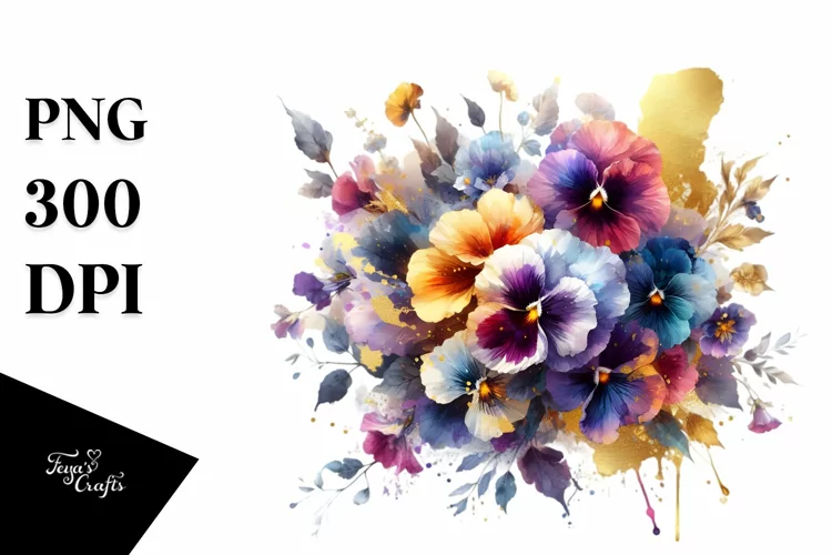 Similar Design Products to bouquet of Pansy with Gold Foil Splashes | Clipart