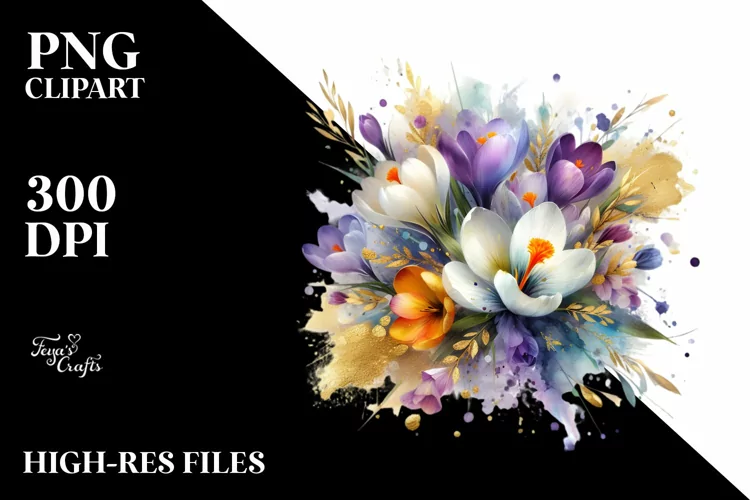 Similar Design Products to bouquet of Crocus with Gold Foil Splashes | Clipart