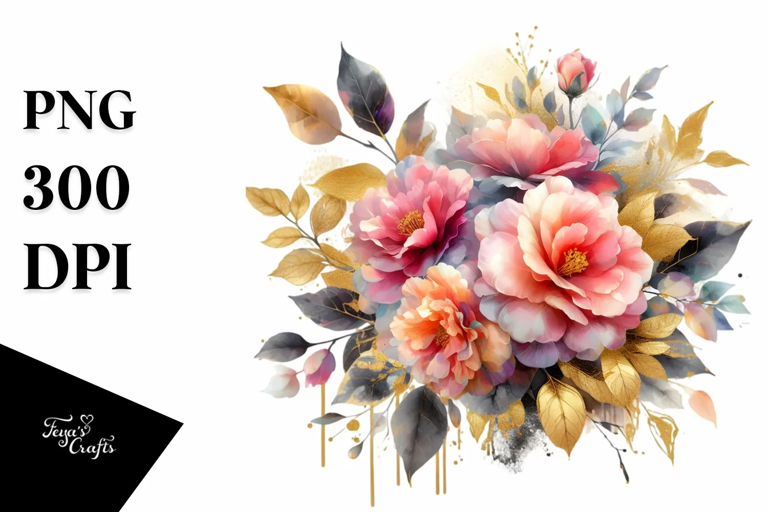Sticker Summer Easter Flower Splash Png Sublimation Camellia Whitebackground Goldfoil