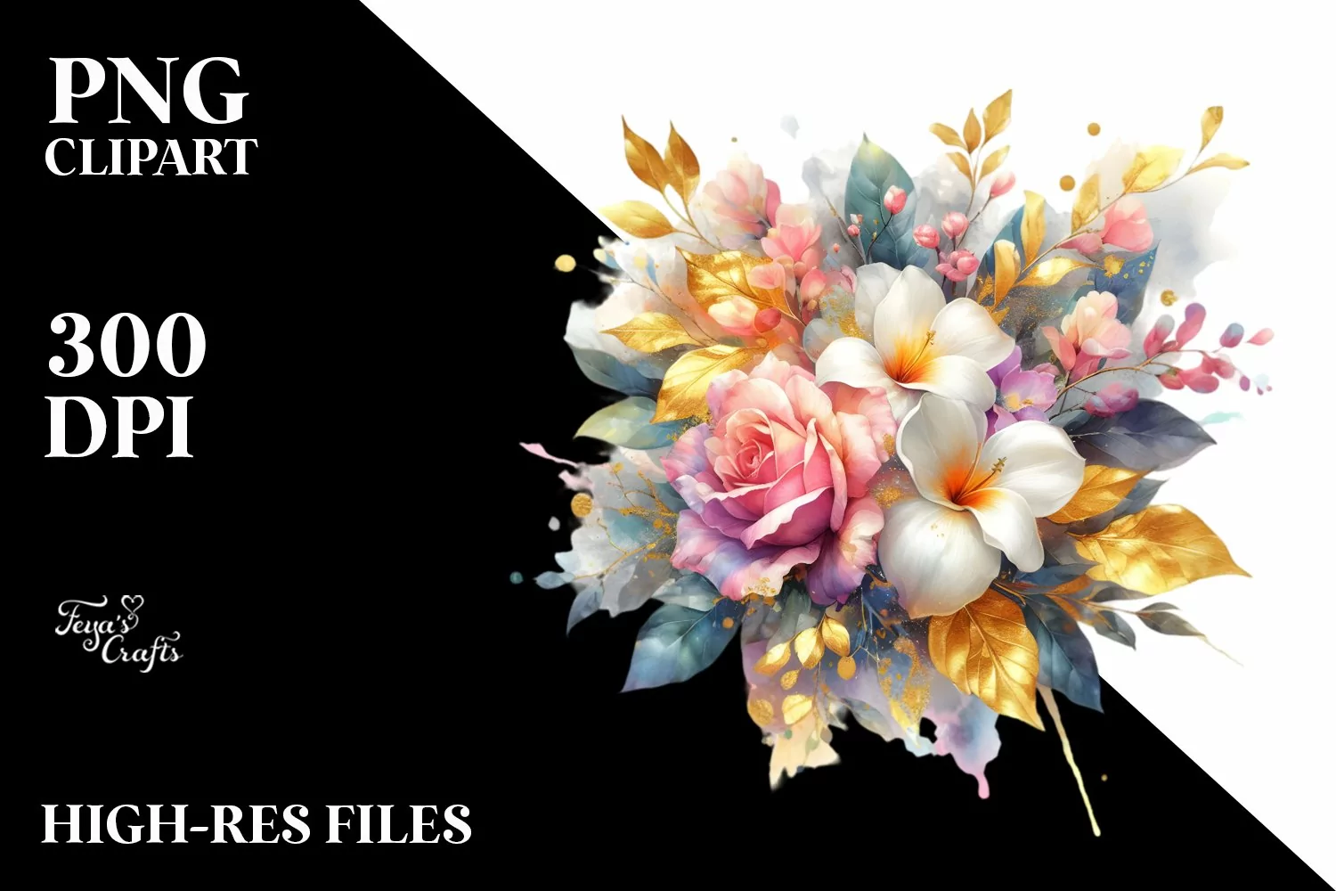 Similar Design Products to Colorful Bouquet with Gardenia Splash | Sublimation Clipart