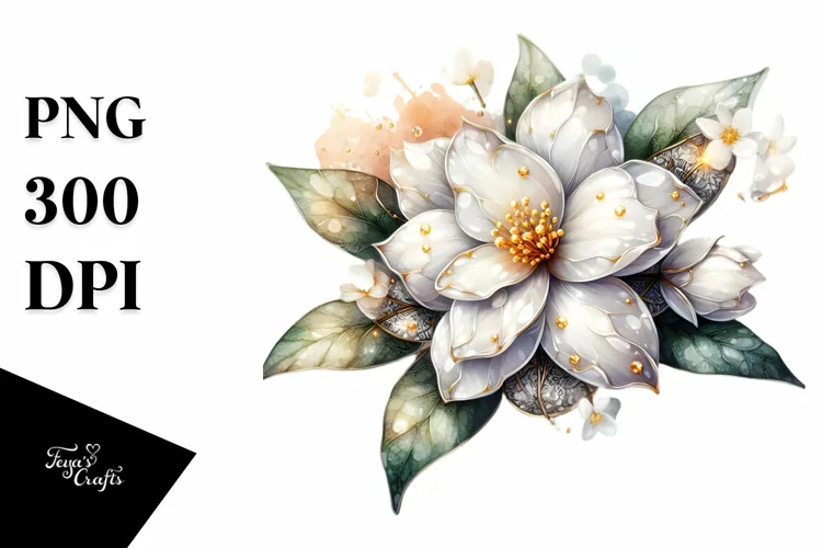 Shiny Jasmine Golden Watercolor Splash | Clipart example image 1