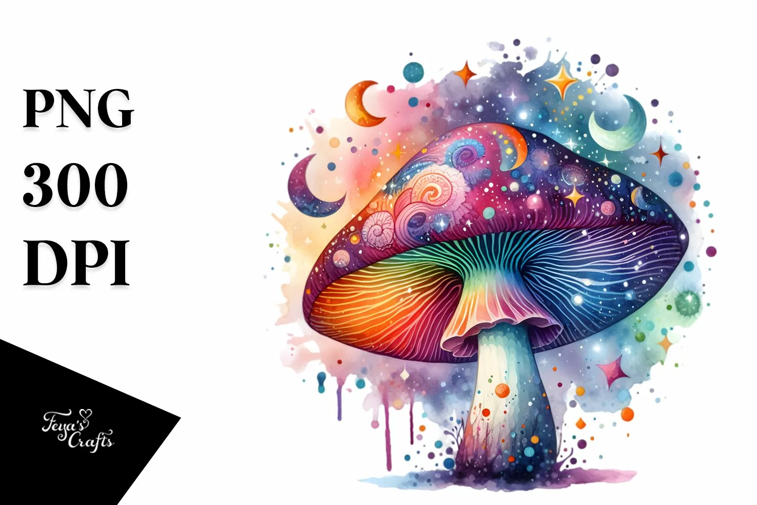 Magical Celestial Mushroom Watercolor Clipart