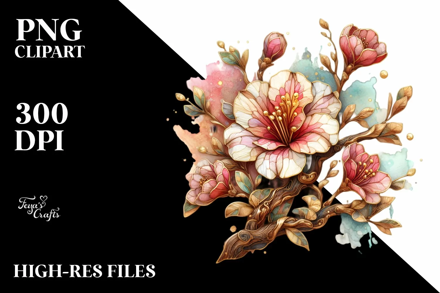 Watercolor Sticker Summer Easter Flower Golden Glass Mothersday Sublimation Stained