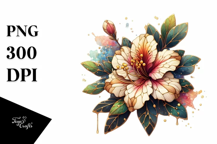 Watercolor Sticker Summer Easter Flower Golden Glass Mothersday Sublimation Stained