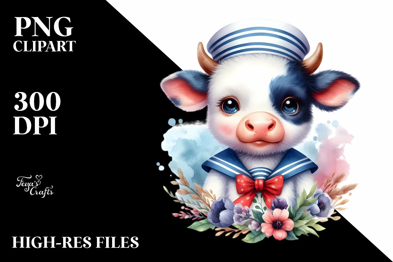 Watercolor Sticker Summer Sailor Baby Easter Flower Png Cow Sublimation