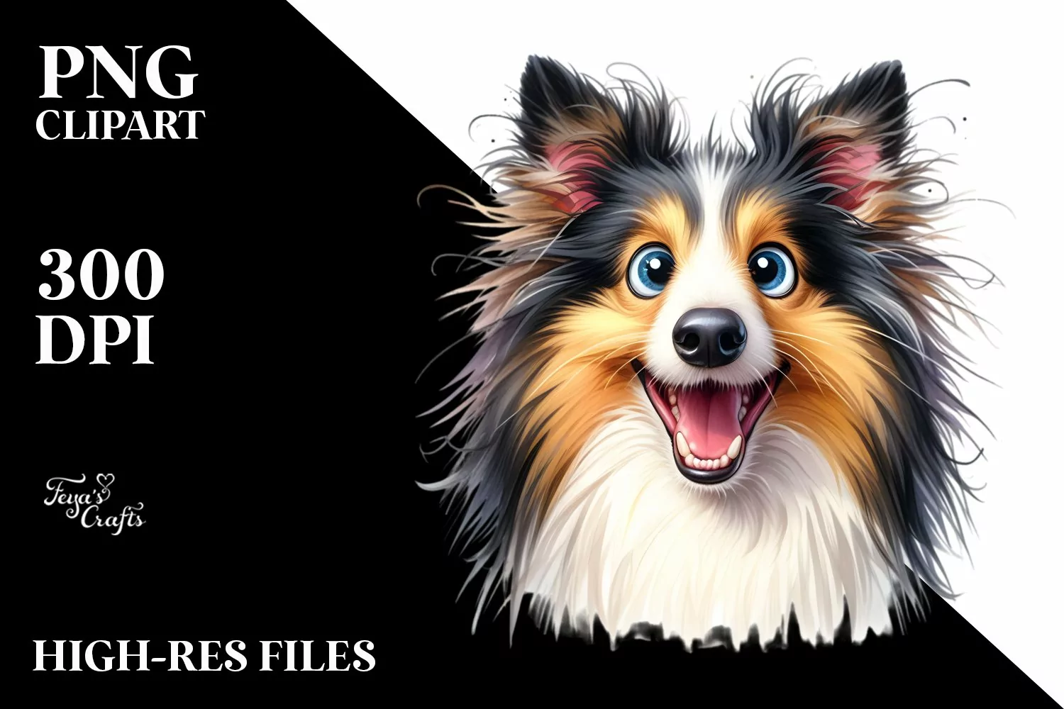 Crazy Funny Collie Smiling Clipart example image 1
