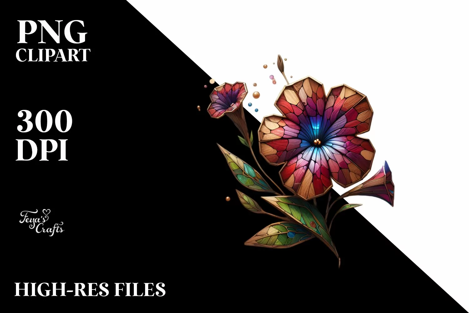 Sticker Summer Easter Flower Wooden Abstract Png Sublimation Petunia Stainedglass