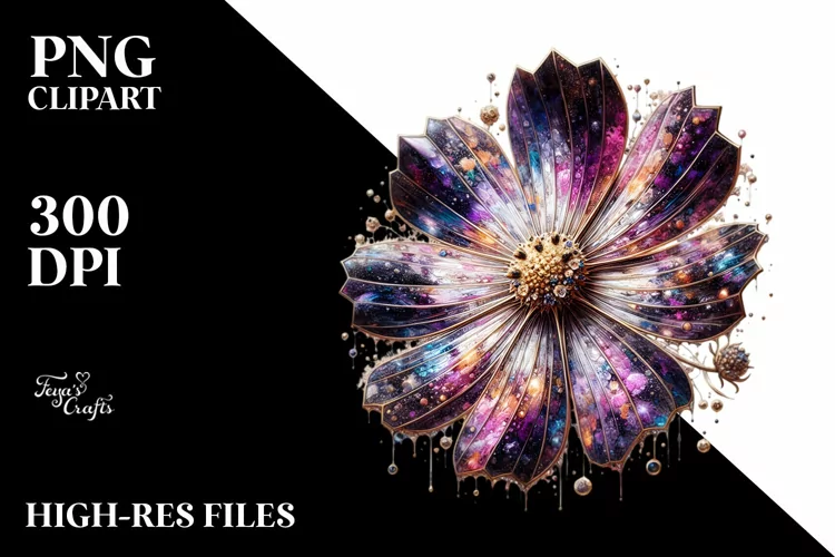 Detailed Shiny Cosmos | Sublimation | Clipart example image 1