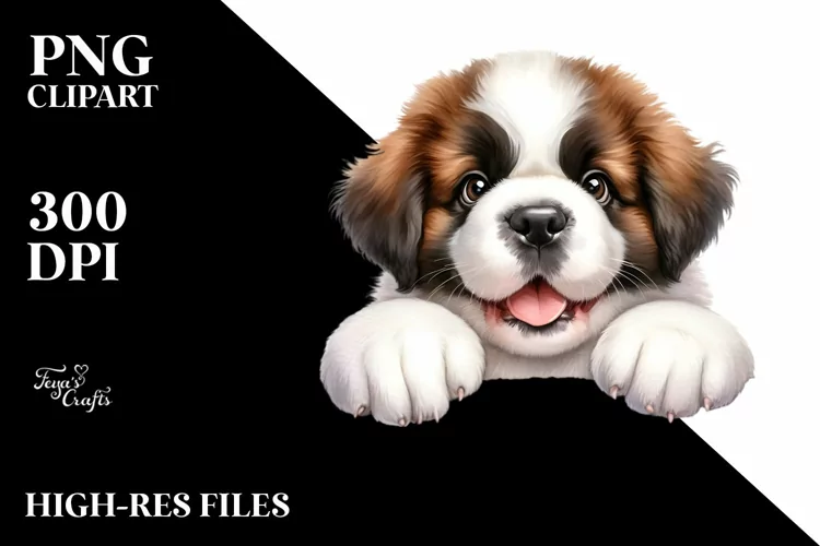 Funny Smiling Baby Saint Bernard Watercolor Clipart example image 1