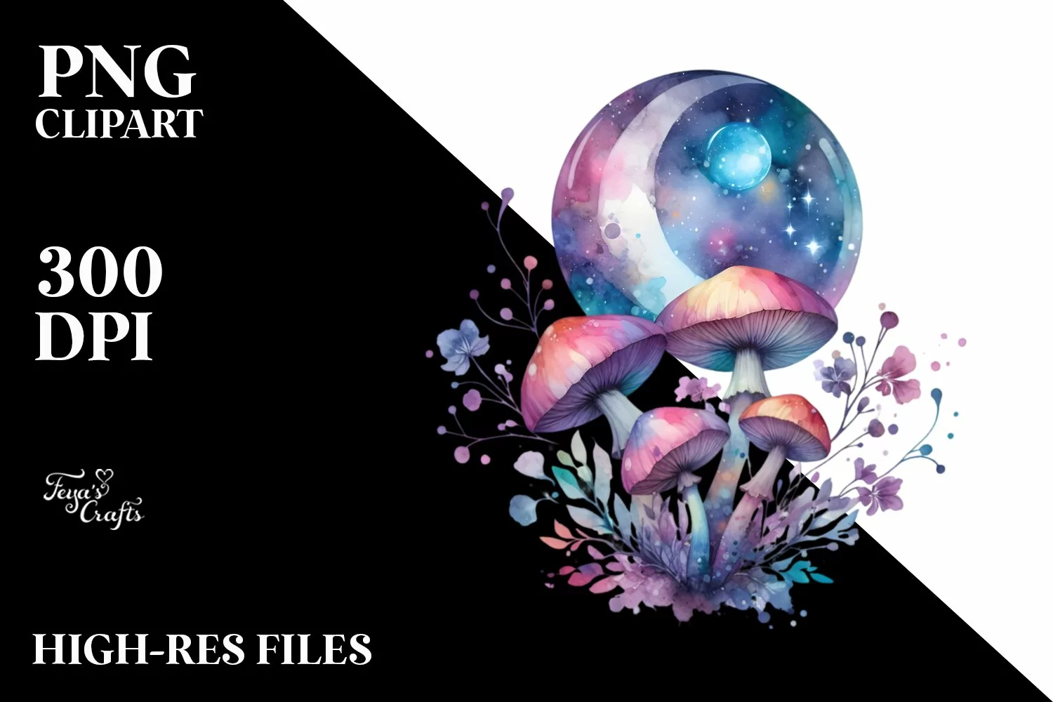 Colorful Watercolor Magical Celestial Astral Mushroom