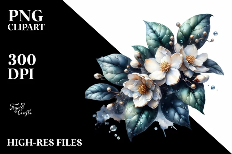 Shiny Material Jasmine Watercolor Splash example image 1