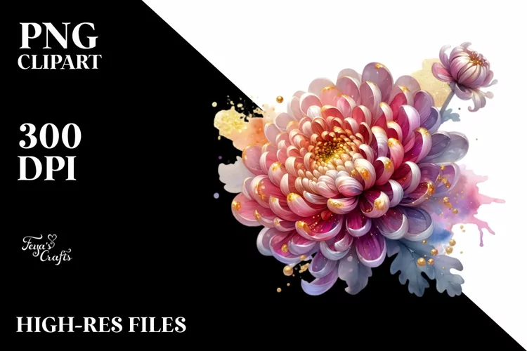 Glossy Chrysanthemum Watercolor Splash | Sublimation |