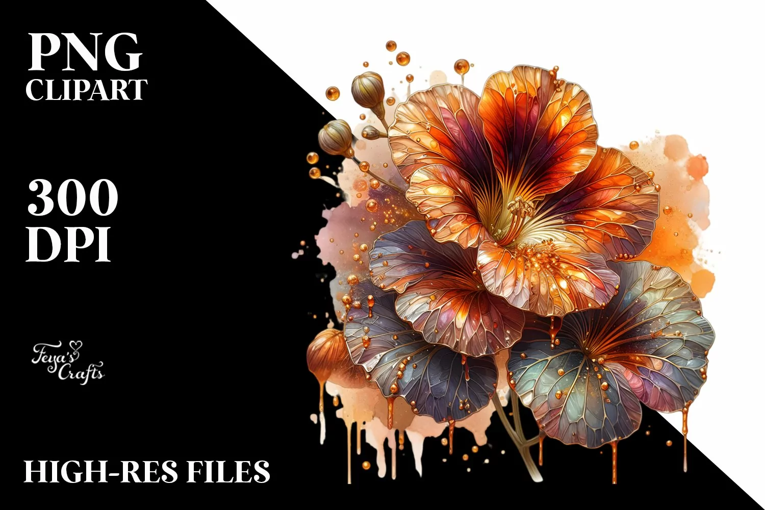Similar Design Products to y Metallic Shiny Watercolor Nasturtium | Sublimation Clipart