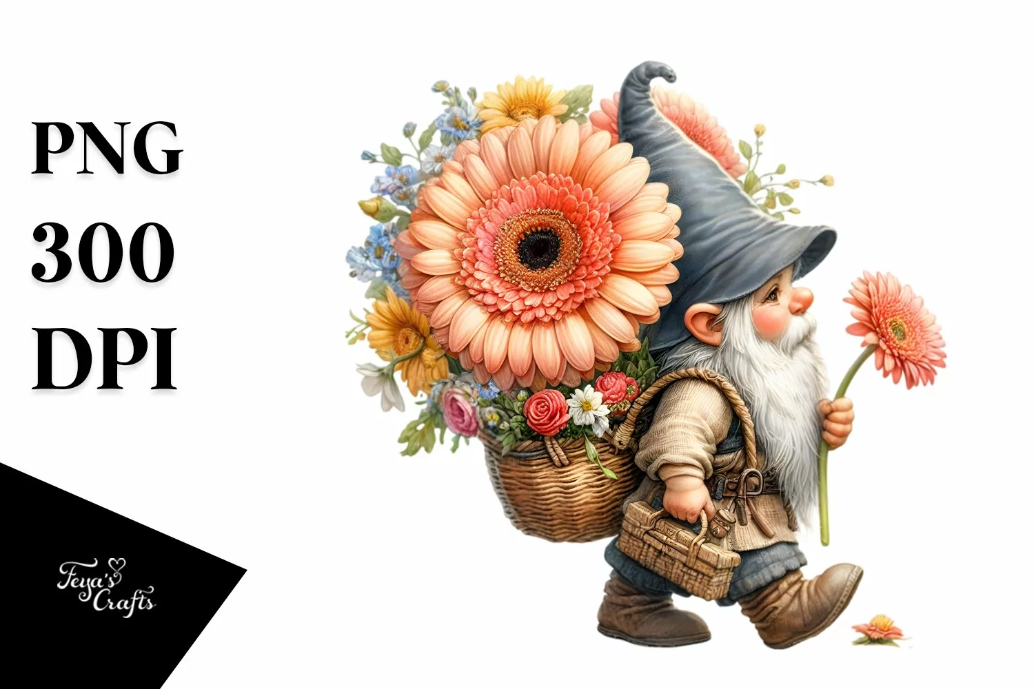 Detailed Gnome with Gerbera Bouquet Clipart example image 1