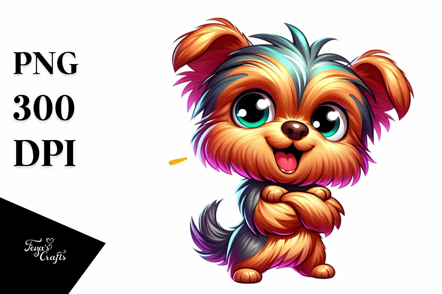 Colorful Small Baby Yorkshire Terrier | Sublimation Clipart
