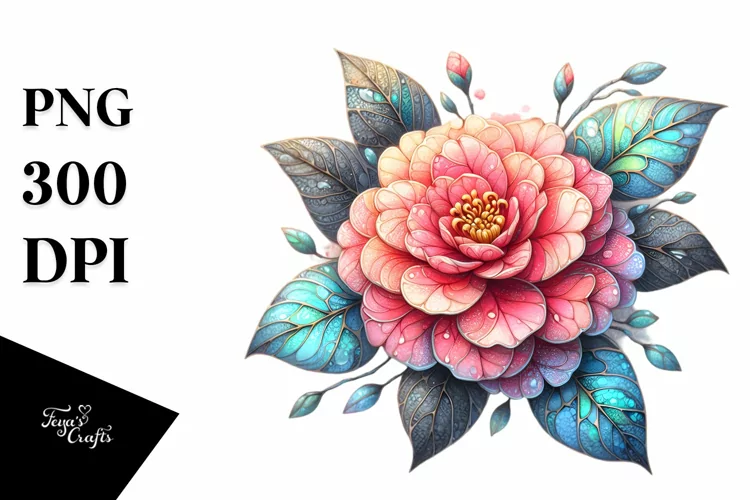 Watercolor Sticker Summer Easter Flower Wooden Png Sublimation Camellia Stainedglass