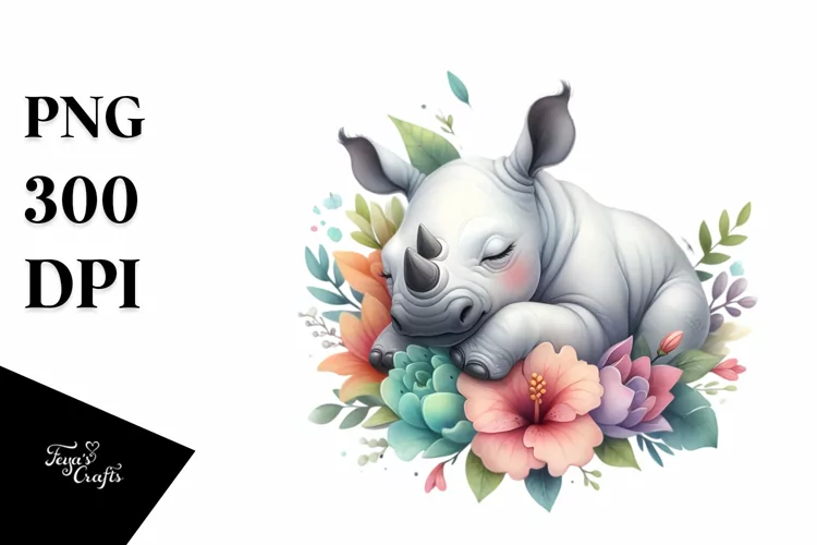 Sticker Summer Baby Easter Colorful Flower Png Rhino Sublimation Sleeping