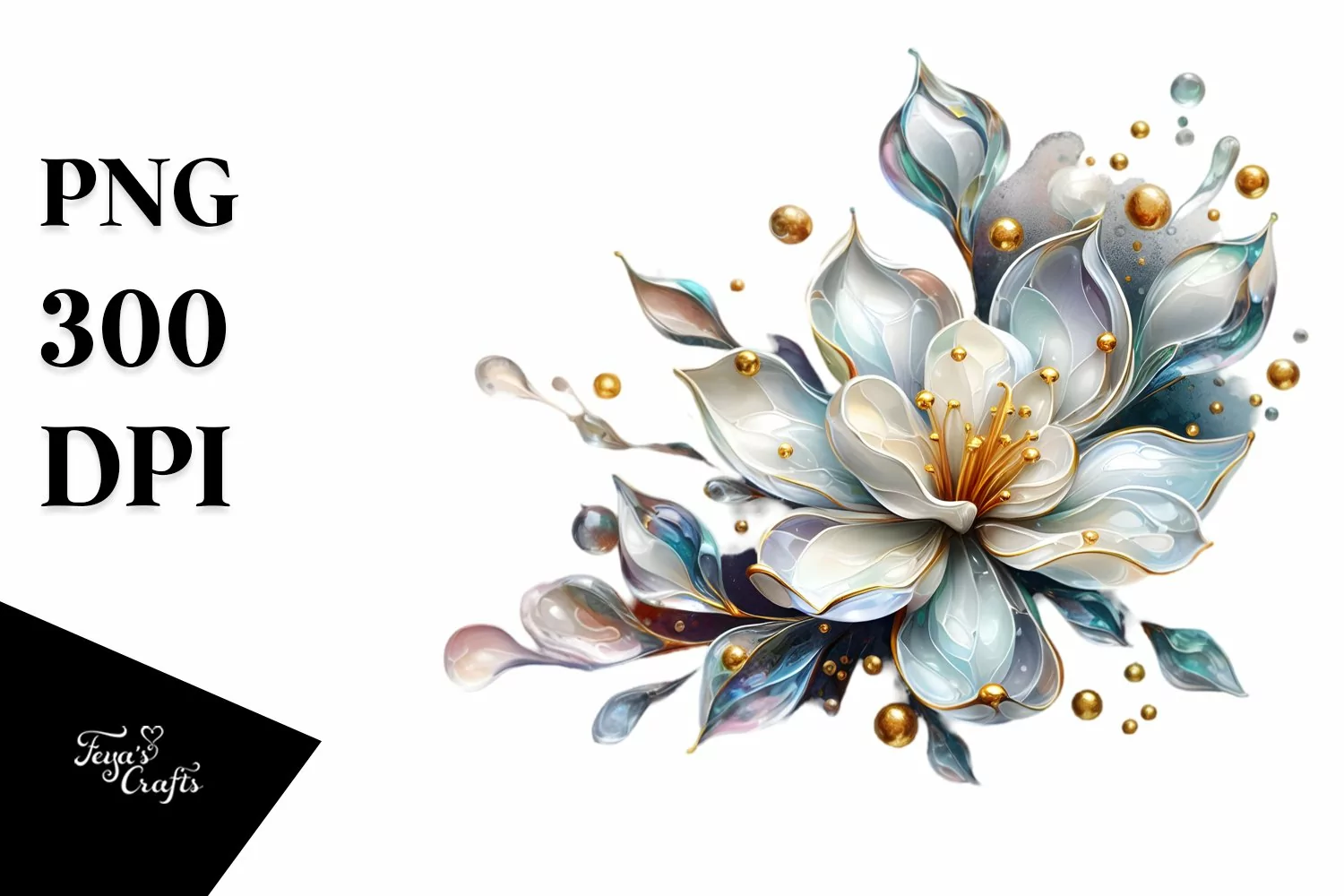 Similar Design Products to Shiny Golden Gardenia Watercolor Splash Clipart