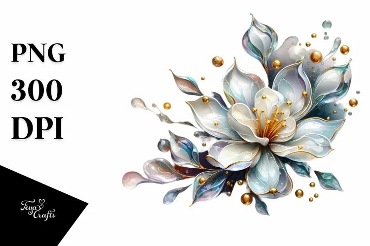 Watercolor Sticker Summer Easter Flower Golden Glass Mothersday Sublimation Gardenia