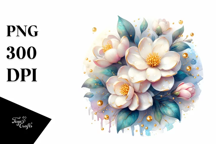 Shiny Gardenia with Golden Insertions | Sublimation | example image 1