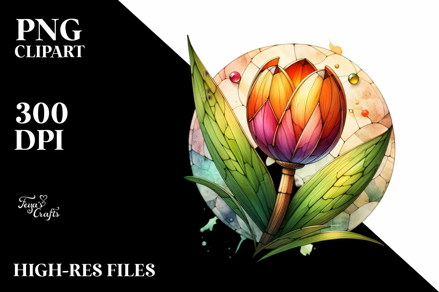 Wooden Stained Tulip Watercolor Splash | Sublimation | example image 1