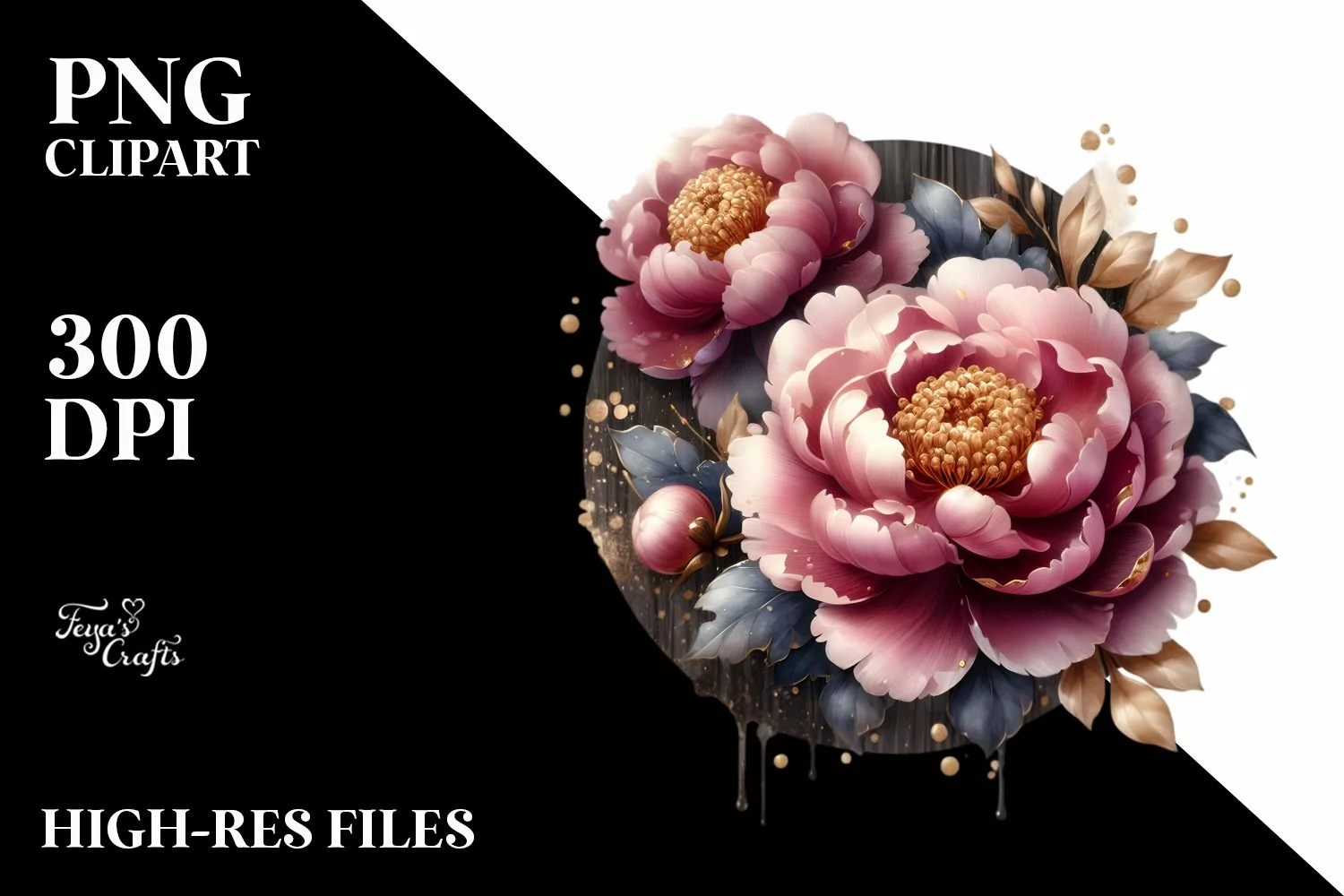 Similar Design Products to Shiny Peonies Watercolor Splash Clipart