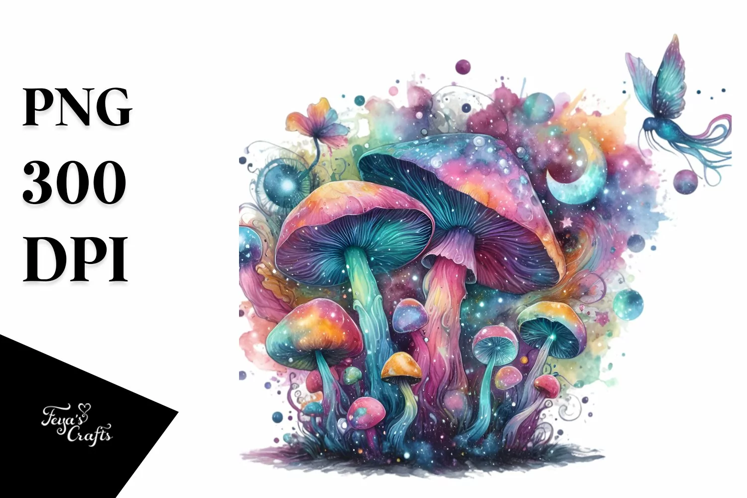 Colorful Magical Celestial Astral Mushroom Watercolor example image 1