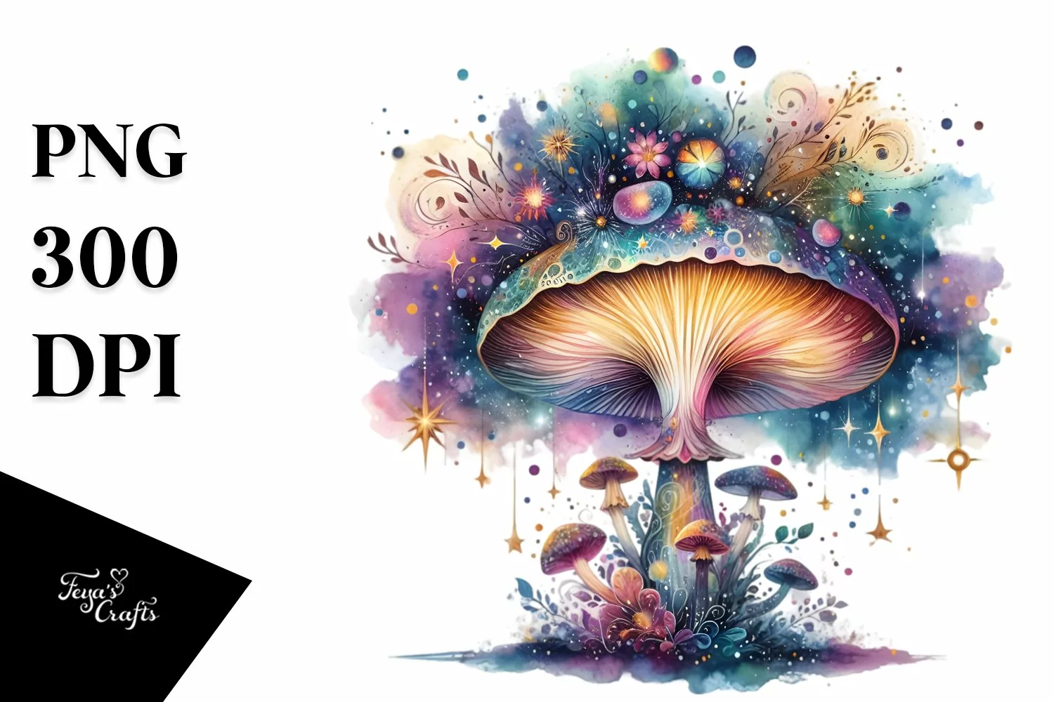 Magical Celestial Mushroom Watercolor Splash example image 1