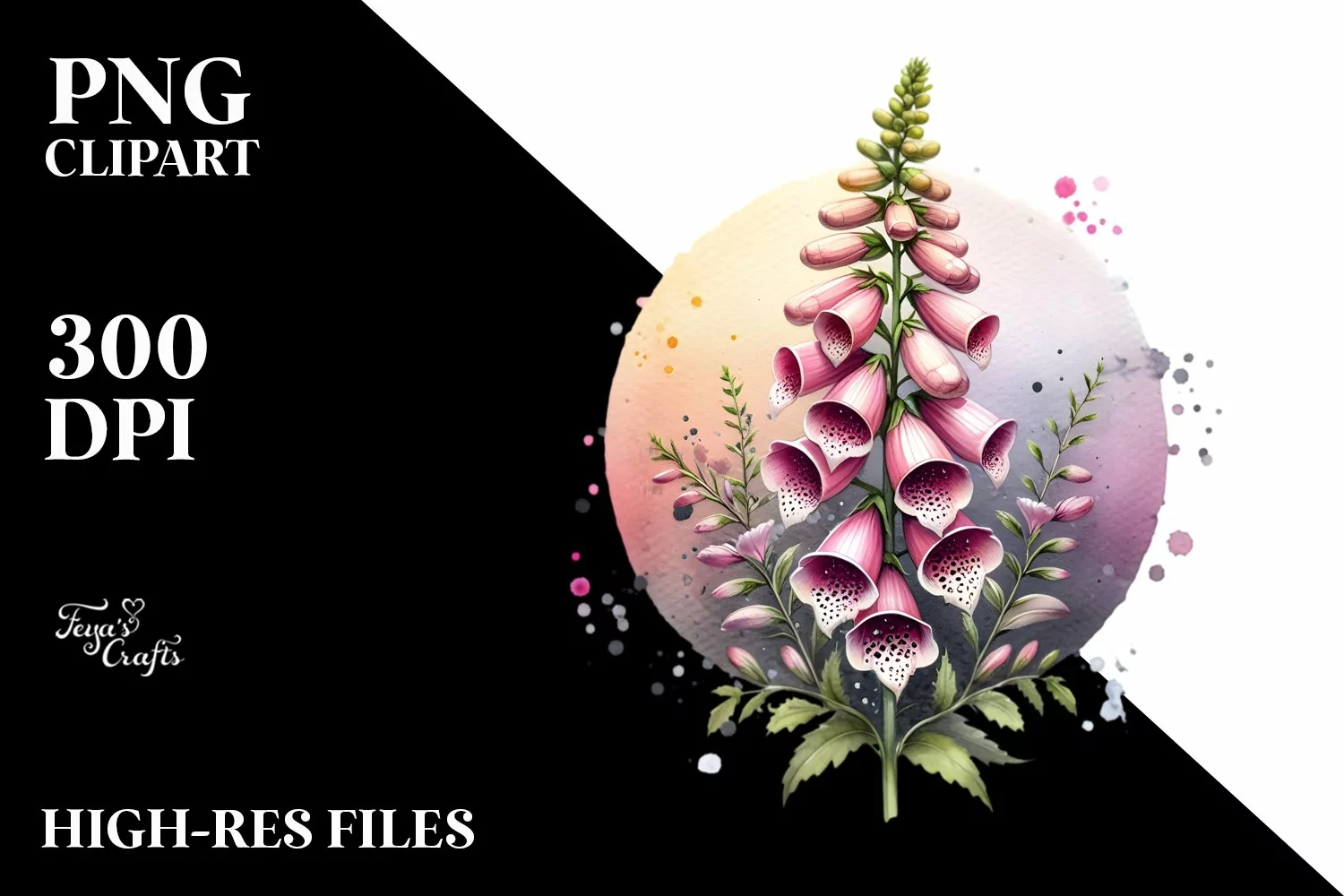 Watercolor Sticker Summer Easter Flower Shiny Glossy Png Sublimation Foxglove