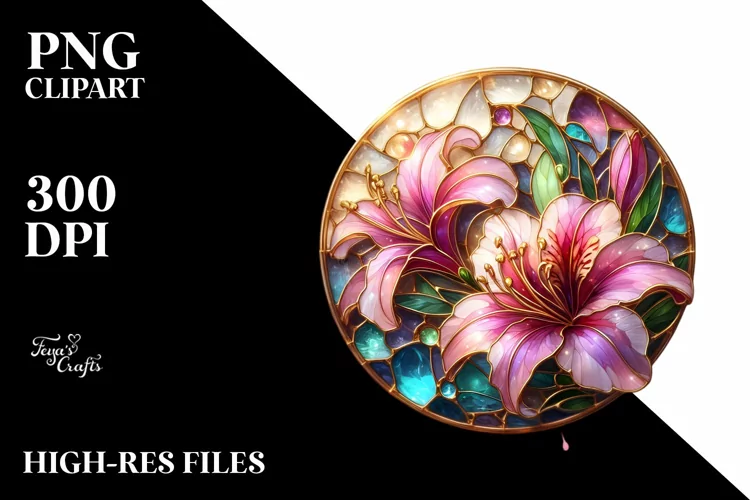 Watercolor Sticker Summer Easter Flower Shiny Png Sublimation Azalea Stainedglass