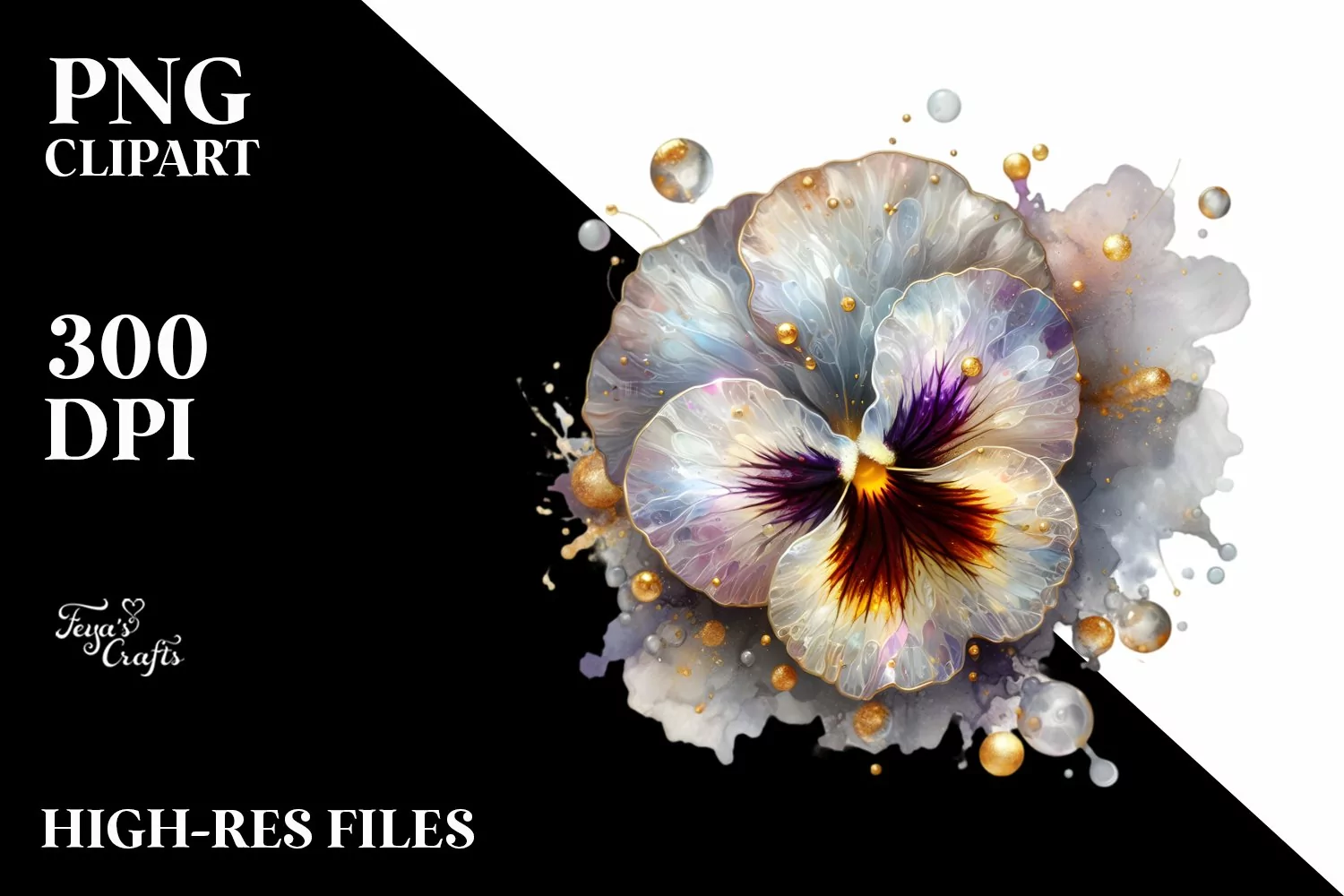 Watercolor Sticker Summer Easter Flower Shiny Golden Png Sublimation Pansy