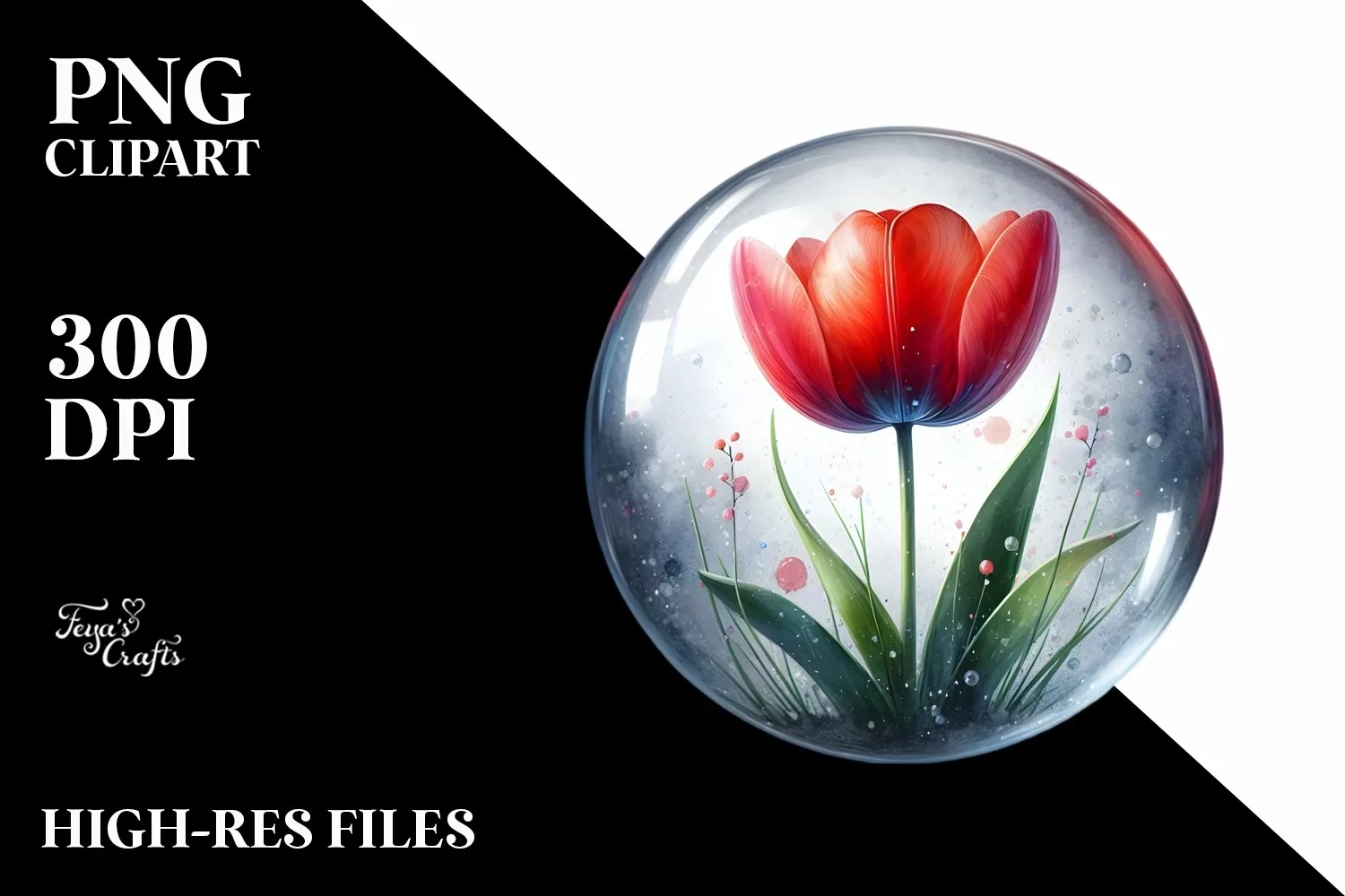 Glossy Tulip with Watercolor Splash | Sublimation | Clipart