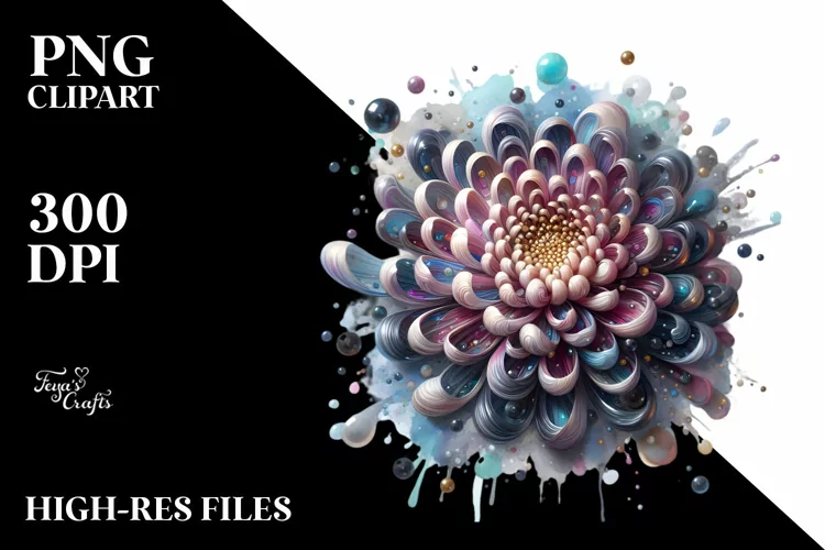 Glossy Chrysanthemum with Metalic Insertions | Sublimation example image 1