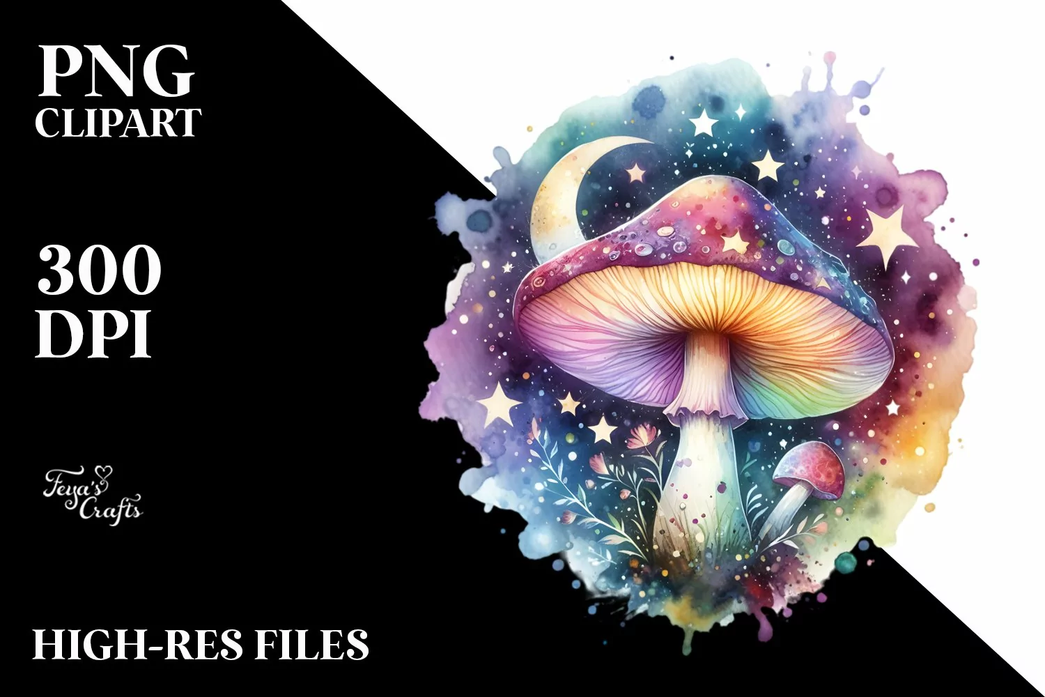 Colorful Magical Mushroom Celestial Clipart