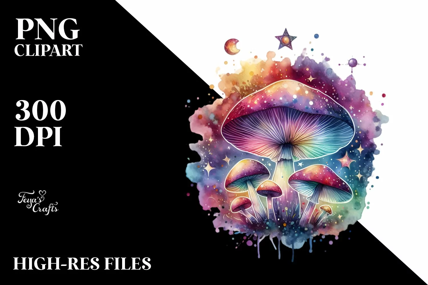 Colorful Magical Mushroom Celestial Clipart