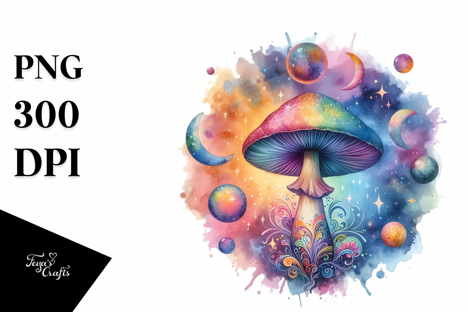 Similar Design Products to Colorful Magical Celestial Mushroom | Watercolor Clipart