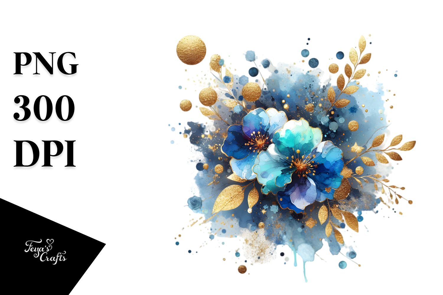 Colorful Blueis Watercolor Splash with Golden Foil | example image 1