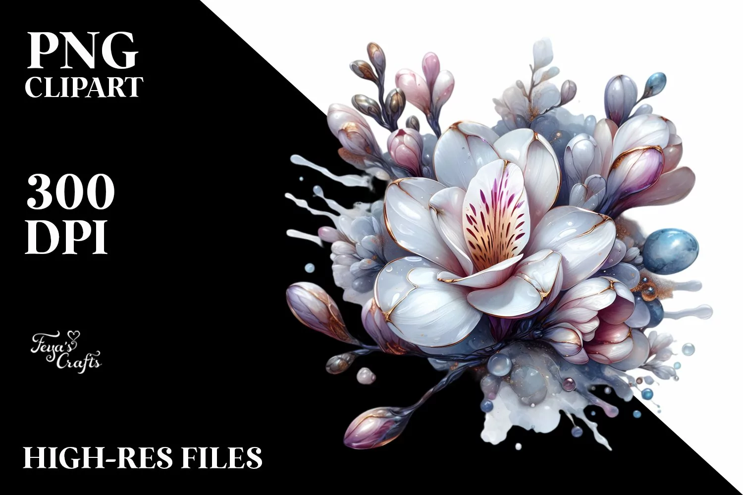 Watercolor Sticker Summer Easter Flower Png Glass Metallic Sublimation Freesia