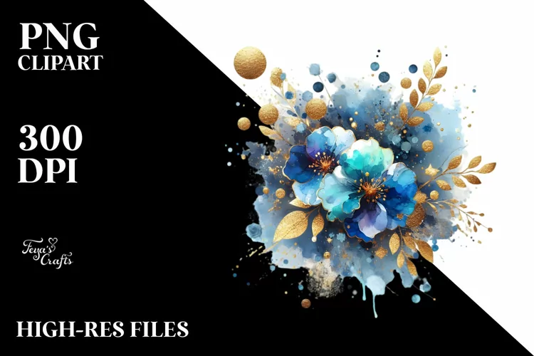 Colorful Blueis Watercolor Splash with Golden Foil |