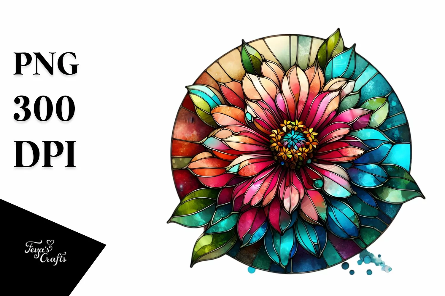 Shiny Round Zinnia Stained | Sublimation | Clipart