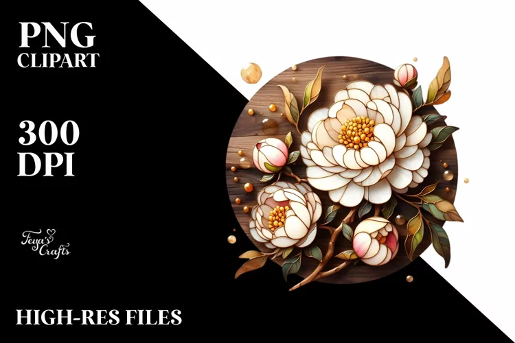 Sticker Summer Easter Flower Golden Peonies Png Glass Sublimation Insertions
