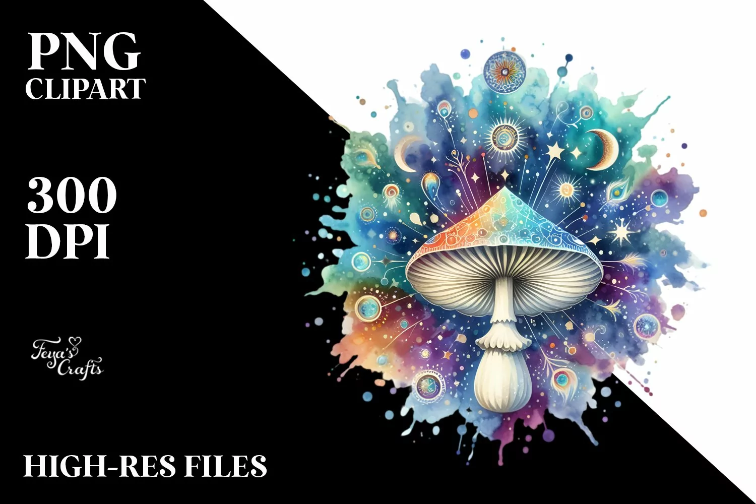 Magical Celestial Astral Mushroom Watercolor Splash |
