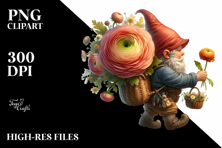 Similar Design Products to Small Gnome with Ranunculus Bouquet | White Background