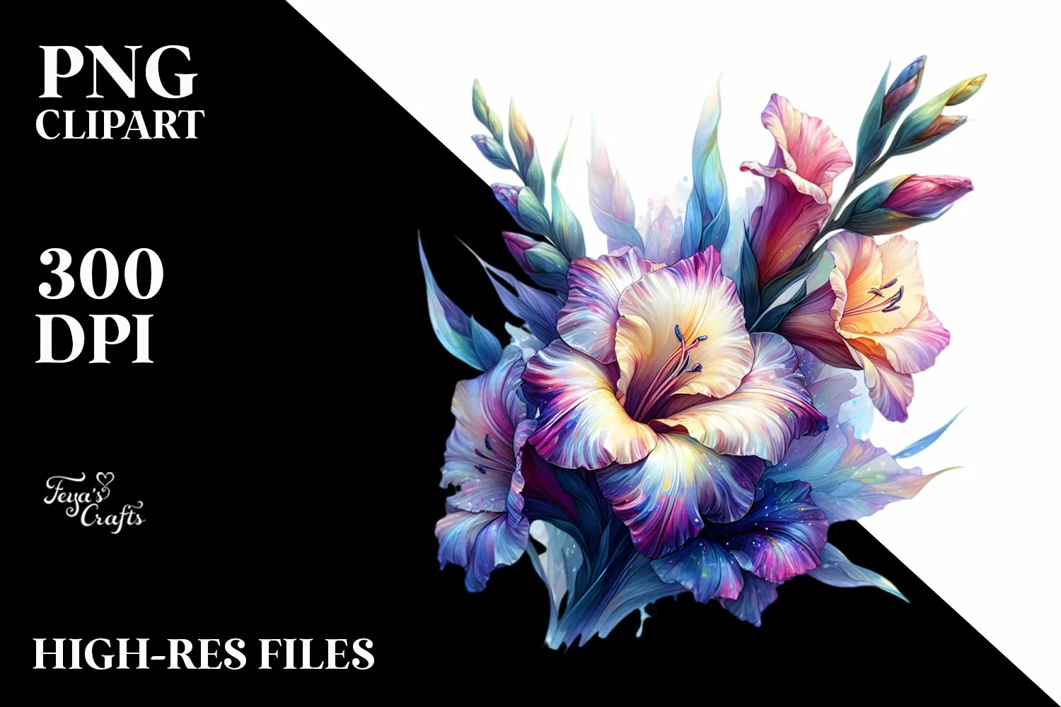 Watercolor Sticker Summer Easter Flower Shiny Png Glass Sublimation Gladiolus