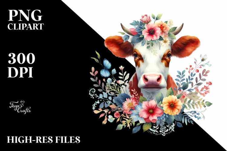 Funny Sticker Summer Easter Colorful Floral Flower Png Cow Sublimation