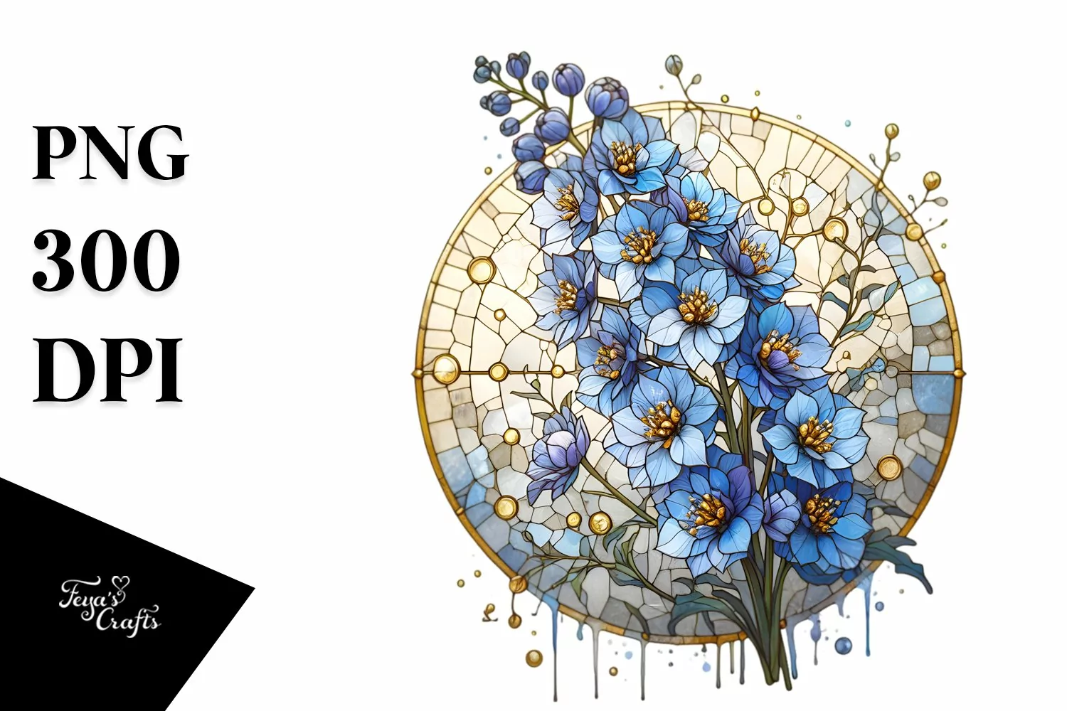 Watercolor Sticker Summer Easter Flower Golden Png Sublimation Delphinium