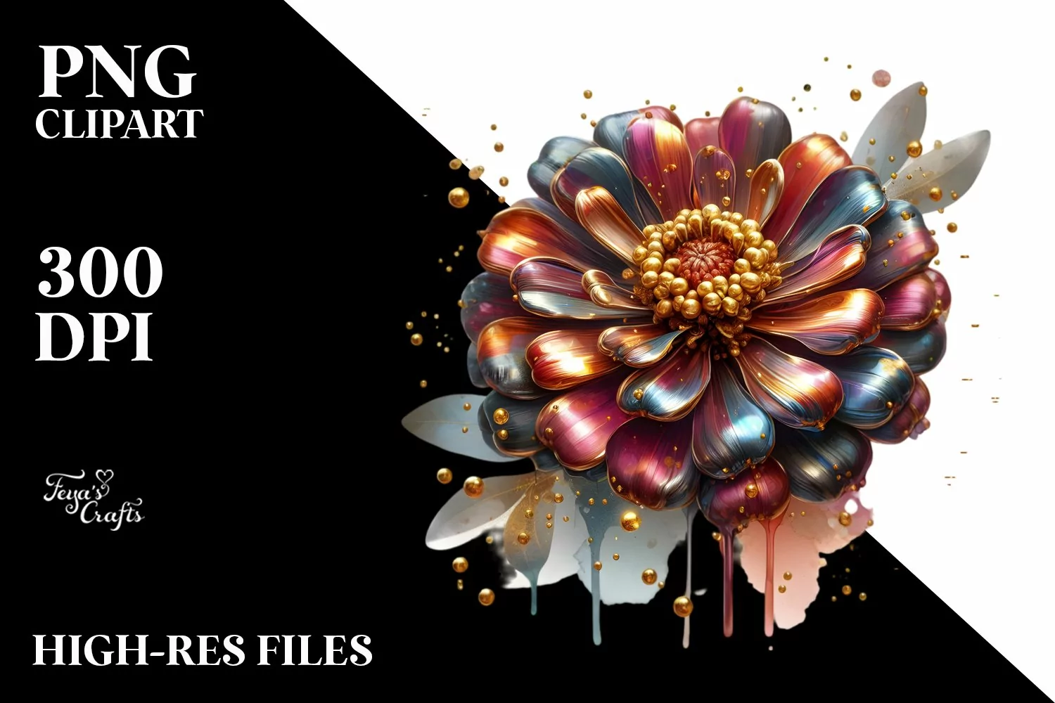 Sticker Summer Flower Shiny Abstract Png Glass Sublimation Whitebackground Zinnia