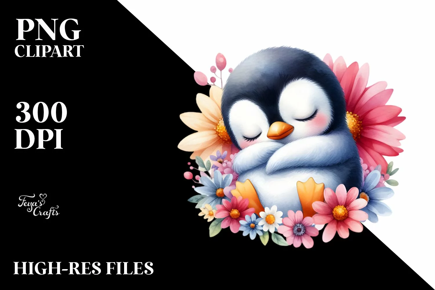 Colorful Watercolor Cute Baby Penguin | Clipart